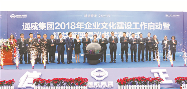 禚玉嬌總裁等領(lǐng)導(dǎo)共同啟動(dòng)了集團(tuán)2018年企業(yè)文化建設(shè)工作,并作重要指示。禚總指出,在劉主席的帶領(lǐng)下,通威將創(chuàng)業(yè)時(shí)期一直堅(jiān)持的艱苦奮斗工作精神和誠(chéng)實(shí)守信的商業(yè)思想豐富升華到作為一個(gè)企業(yè)的社會(huì)責(zé)任,并逐步形成了一套完整的通威企業(yè)文化體系,經(jīng)過(guò)不斷積淀、完善,成為了集團(tuán)堅(jiān)實(shí)的文化根基。